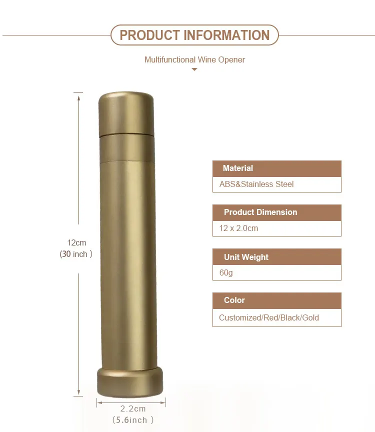 Model: SW-AO04MOQ: 500 PiecesMaterial: ABS,Stainless SteelColor: Customized/Red/Black/GoldSize: 2.2*2.2*12cm