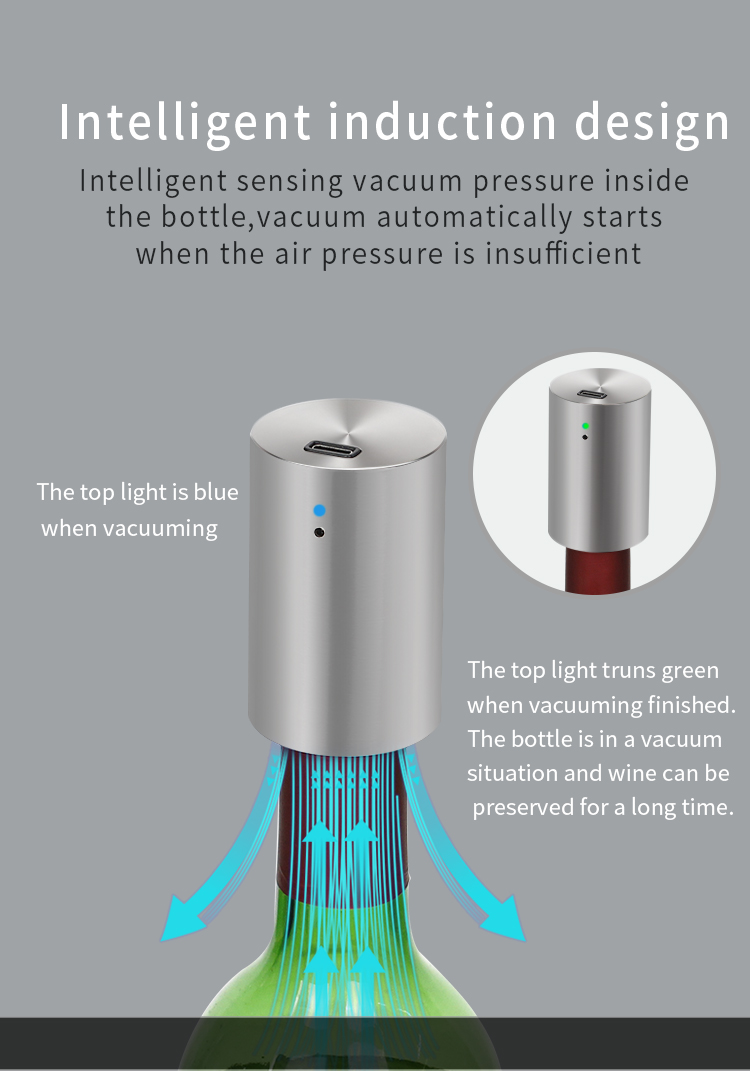 The wine bottle stoppers can detect the air pressure inside the bottle constantly. When the pressure